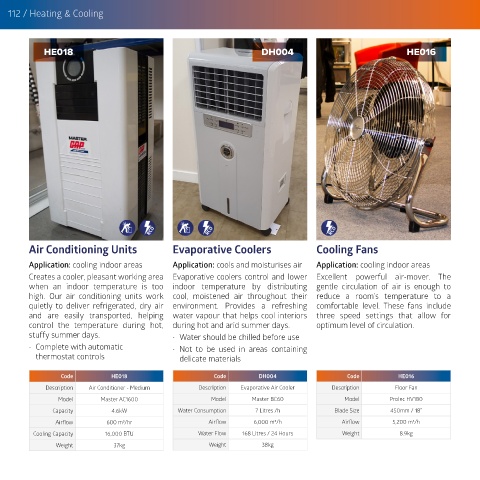 Description Air Conditioner - Medium Description Evaporative Air Cooler Description Floor Fan