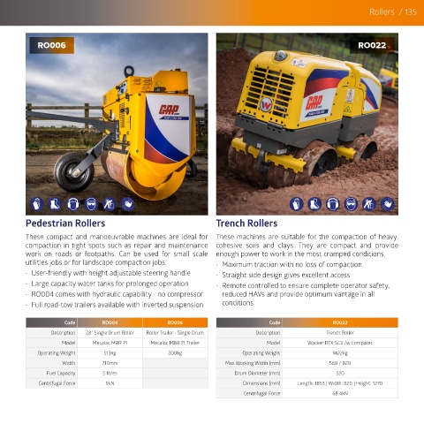 These compact and manoeuvrable machines are ideal for These machines are suitable for the compaction of heavy,