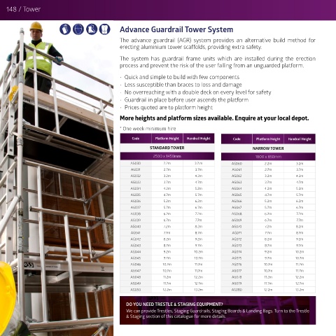 & Staging section of this catalogue for more details.