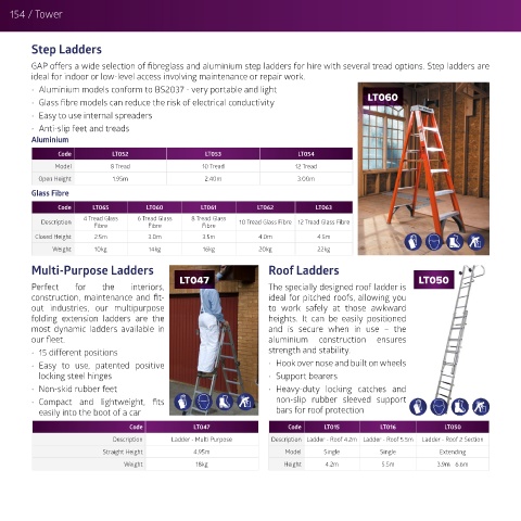 GAP offers a wide selection of fibreglass and aluminium step ladders for hire with several tread options. Step ladders are