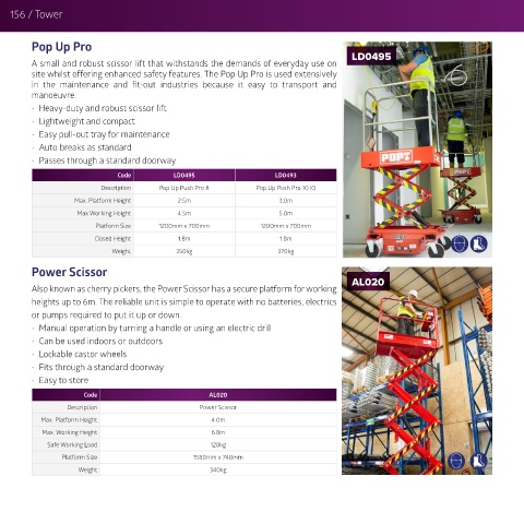 Also known as cherry pickers, the Power Scissor has a secure platform for working AL020