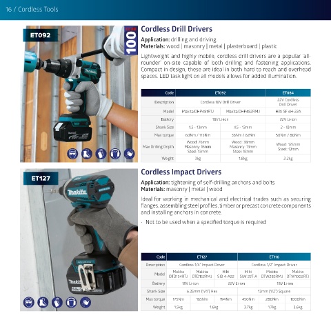 Description Cordless 1/4” Impact Driver Cordless 1/2” Impact Driver