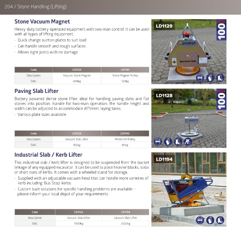 Battery powered dense stone lifter, ideal for handling paving slabs and flat LD1128