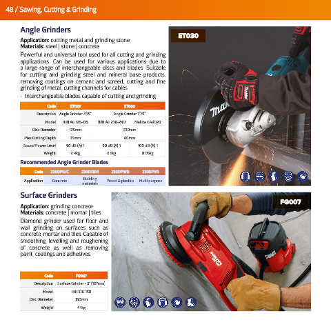 Model Hilti AG 125-13S Hilti AG 230-24D Makita GA9020