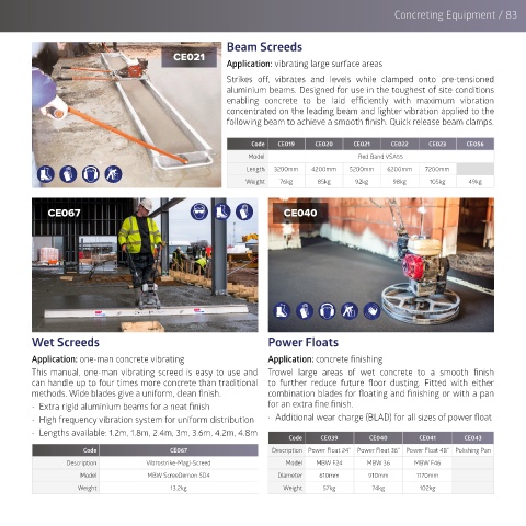 This manual, one-man vibrating screed is easy to use and Trowel large areas of wet concrete to a smooth finish
