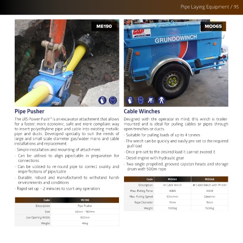 large and small scale diameter gas/water mains and cable • The winch can be quickly and easily pre-set to the required