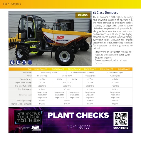 Description 6t Swivel Skip Dumper 6t Swivel Skip Dumper (cabbed) 6t Dual View Dumper