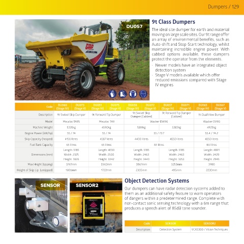 Description 9t Swivel Skip Dumper 9t Forward Tip Dumper 9t Dual View Dumper