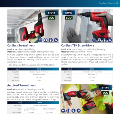 to fix wooden boards, specialised boards such as fermacell range of materials such as steel, aluminium and wood. TEK